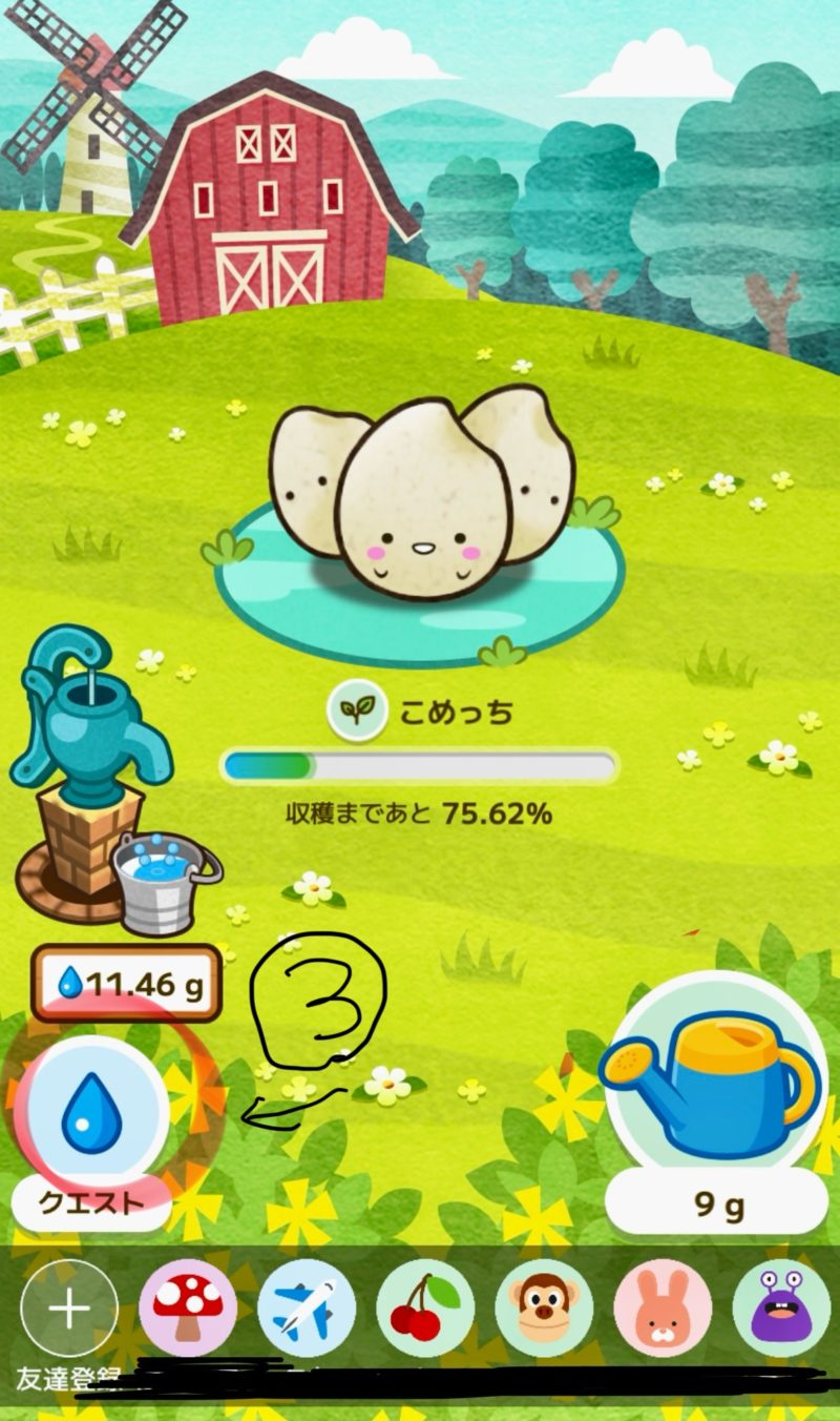 友達になると、友達の作物にお水をあげることができるんです。