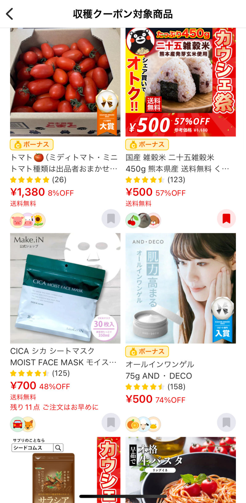 雑穀米とか、アーモンドいりことかカウシェの方が安いから、私はカウシェで買ってます。