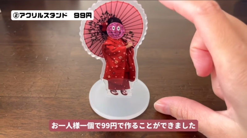 こちらは、初回限定で99円商品です。大きさは8センチで子供の七五三の写真で作りました。