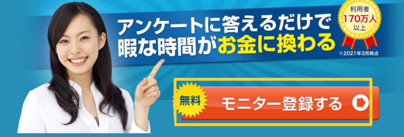リサーチパネルを開いたら「モニター登録する」または、「無料会員登録」を押します。