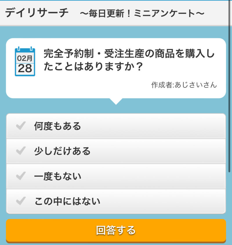 登録が完了したら、早速アンケートに答えてみましょう。
