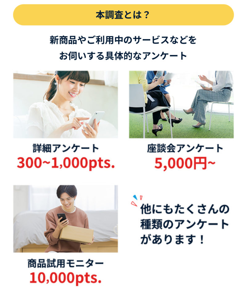 本調査のアンケートは、300〜1000P程度です。