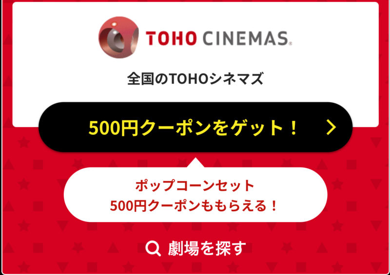 TOHOシネマは、「Wクーポン」で映画が500円とポップコーンセットが500円になるクーポンが発行されるようです。