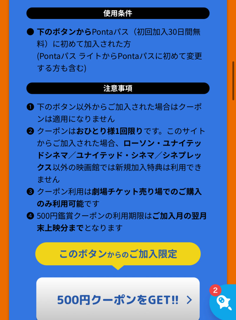 500円クーポンを使ったことある人は、もう使えないからPONTAパス月額548円に登録するとお得に映画が見れるよ。