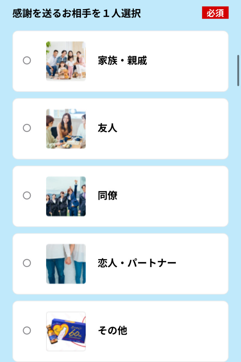 簡単なアンケートに答え、LINEで贈りたい相手に送って、