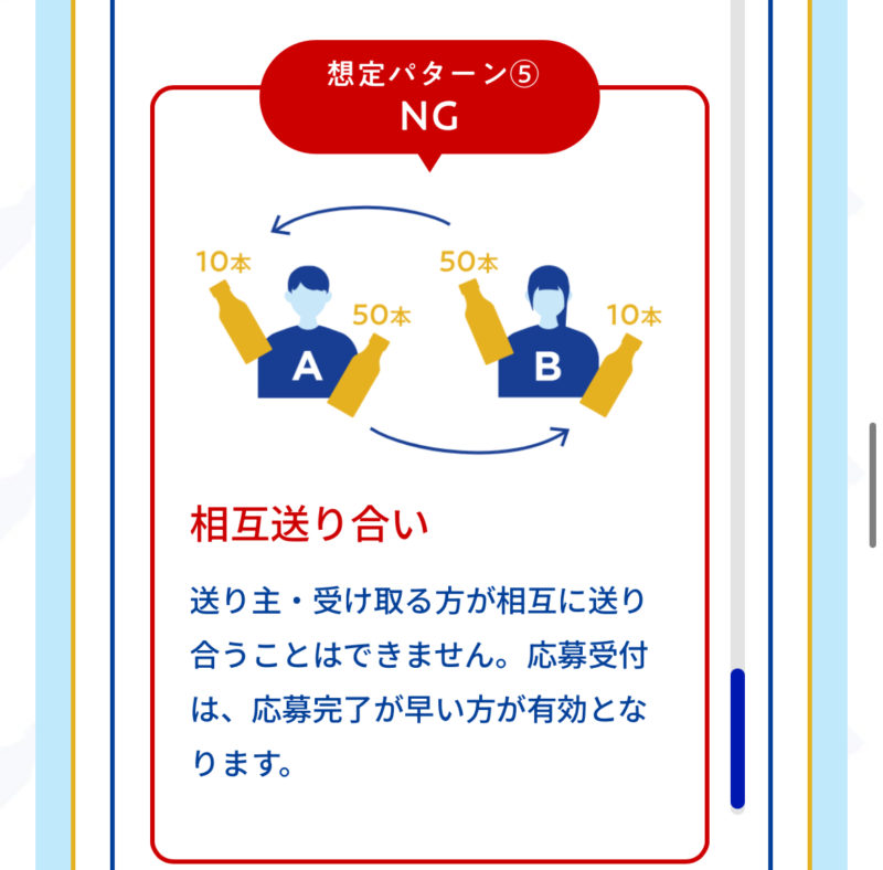 なので、後で贈った方が「できた〜」と思っても、実際は無効なので景品が届かず
