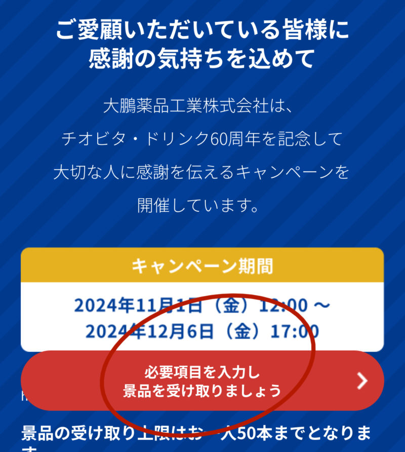 「必要項目を入力し景品を受け取りましょう」を押す。