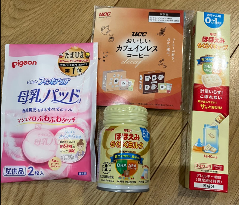出産お試しBOXは、注文時期によって中身が変わりますので、一例として参考にしてくださいね。