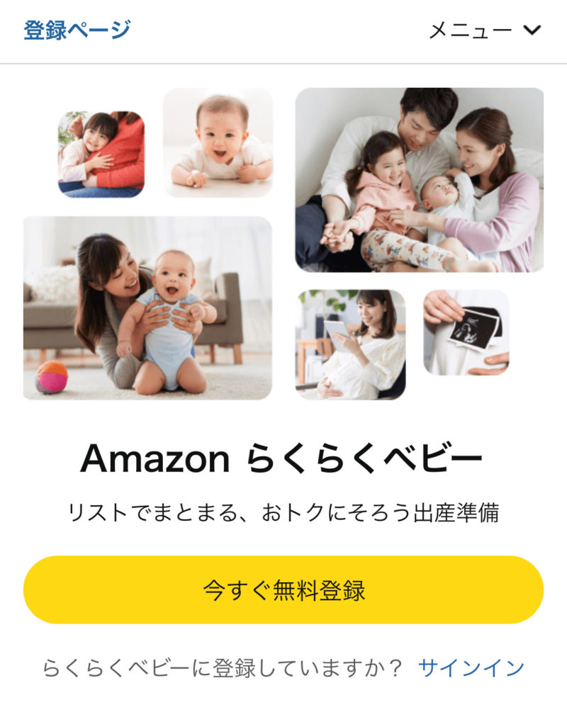 まずは,「らくらくAmazonベビー」にアクセスして「いますぐ登録」を押します。