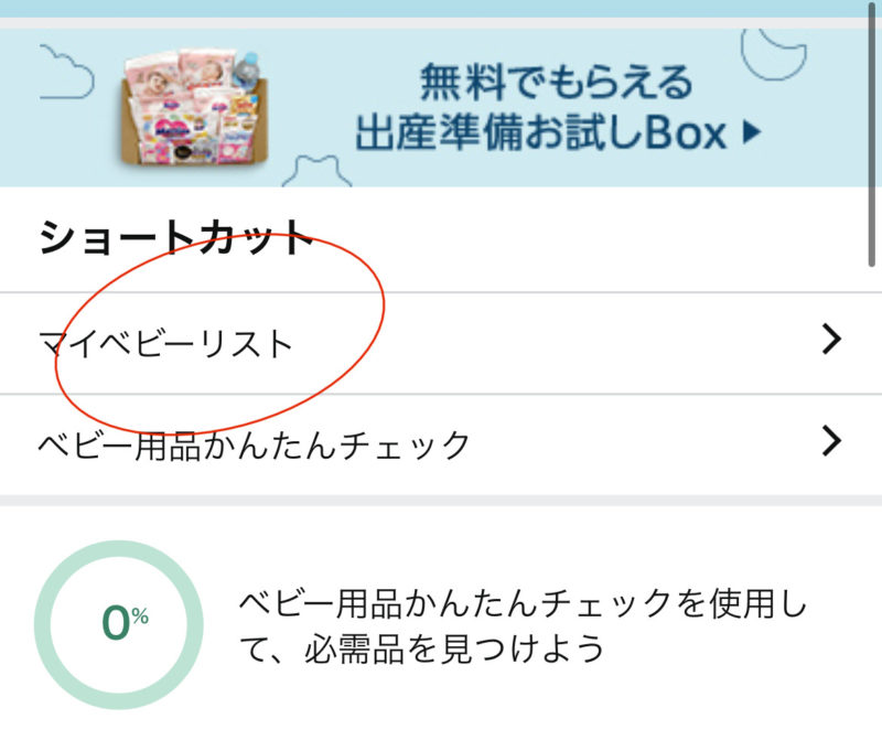 最初はマイベビーリストの中には0個です。