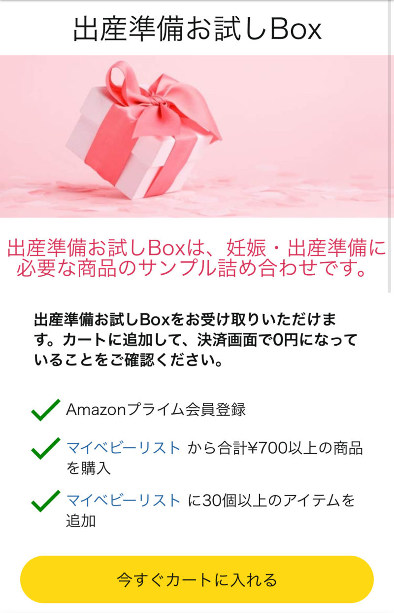 出産お試しBOXをカートに入れ購入