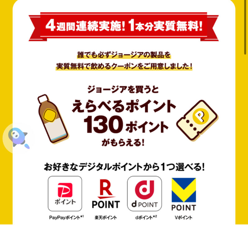 4週連続ジョージア1本実質無料キャンペーン開始!