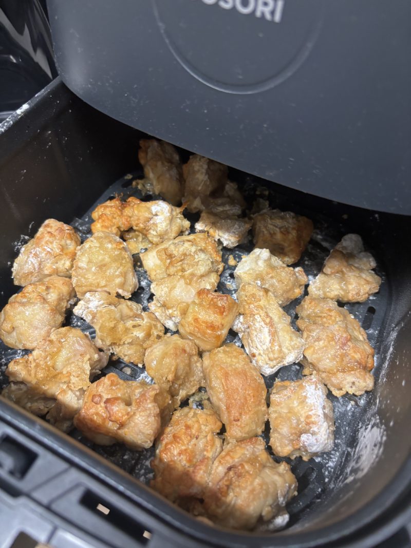 胸肉の唐揚げとか、衣のついたトンカツ系はオイルスプレーかけてあげたほうが、サクサクにできます。
